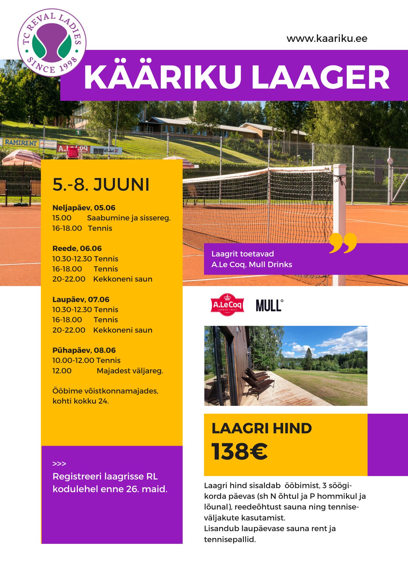 Kolmapäeviti kell 18.00-19.30 on Forus TKs reserveeritud 2 väljakut ning neljapäeviti kell 18-19.30 Karulaugu TK 2 väljakut.